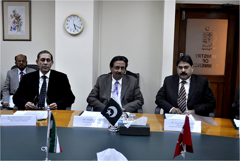 The signing Ceremony of the Articles of Agreement for the Establishment of ECO Reinsurance Company was held in Ministry of Commerce, Islamabad on 10th February 2010. The authorized delegates who signed the Articles of Agreement of behalf of their respective governments were Dr. Javed Farshbaf Maherian from Islamic Republic of Iran, Mr. Ayaz Hussain M. Gad, Executive Director, Pakistan Reinsurance Company Limited and H.E. Mustafa Babur Hizlan, the Ambassador of Republic of Turkey to Pakistan. Mr. Zafar Mahmood, Secretary Commerce and Mr. Waqar Ahmed Shah, Director ECO Secretariat, Iran were also present at the occasion