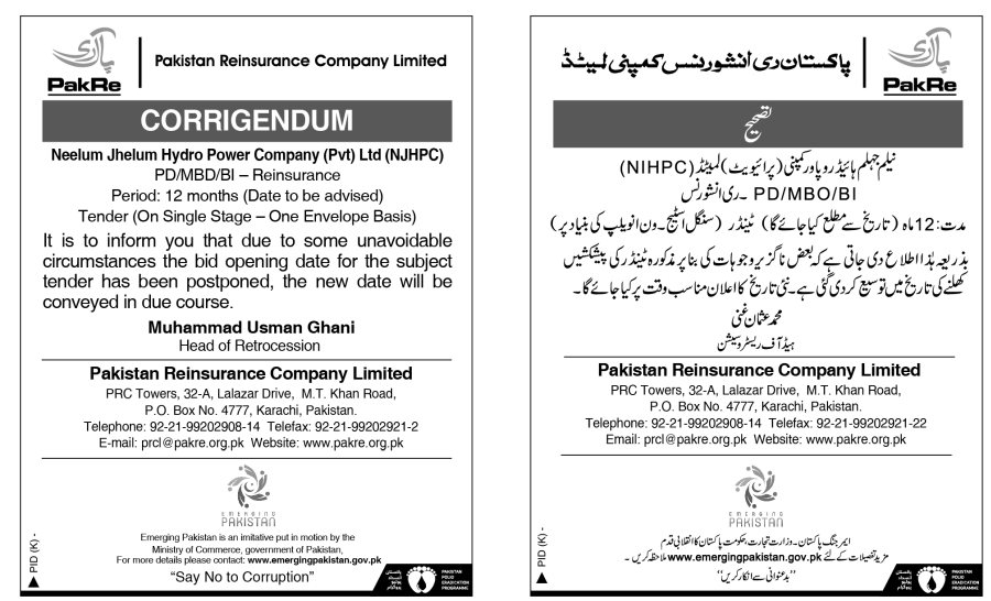 Corrigendum Neelum Jhelum Hydro Power Company NJHPC PD MBD BI_26 Oct 2019