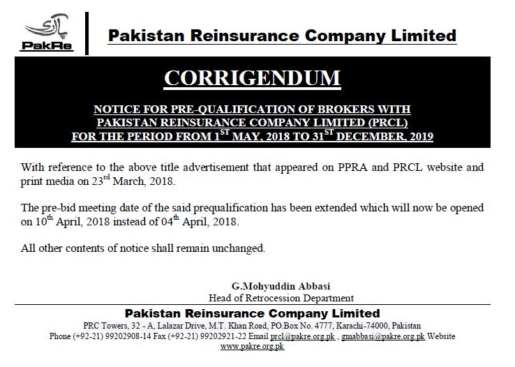 Corrigendum on Pre Qualification of Brokers