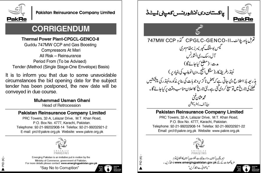 Corrigendum Thermal Power Plant CPGCL GENCO II All Risk Reinsurance_26 Oct 2019