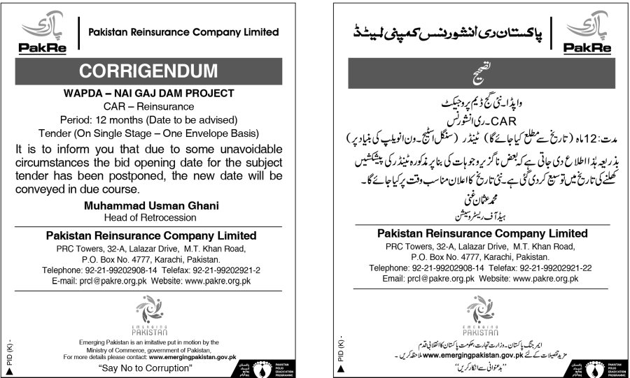 Corrigendum WAPDA NAI GAJ DAM Project_26 Oct 2019