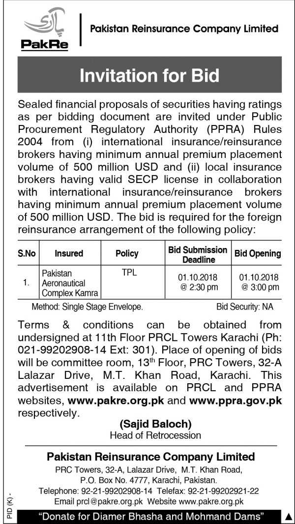 Invitation of Bids for Foreign Reinsurance Arrangement