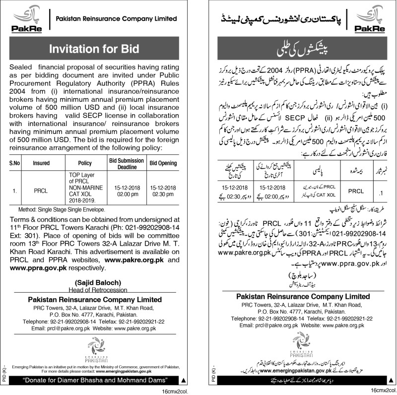 Invitation of Bids for Foreign Reinsurance Arrangement_16 Nov 2018