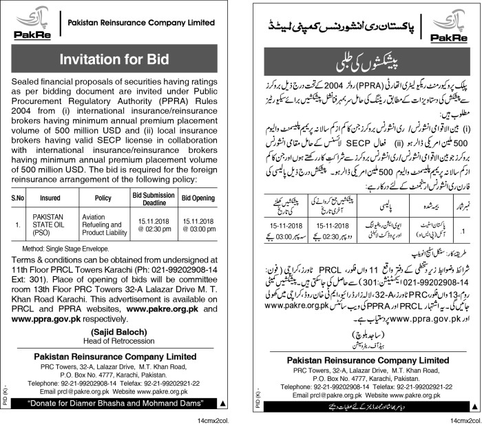 Invitation of Bids for Pakistan State Oil PSO