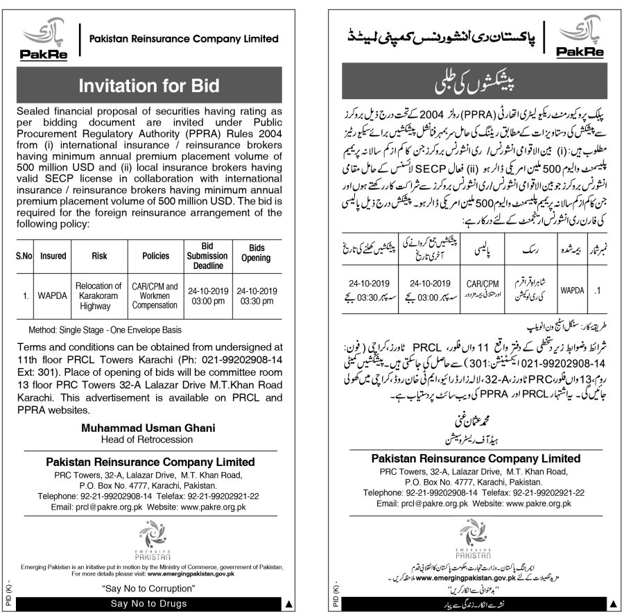 Invitation of Bids for WAPDA Karokaram Highway_20 09 2019