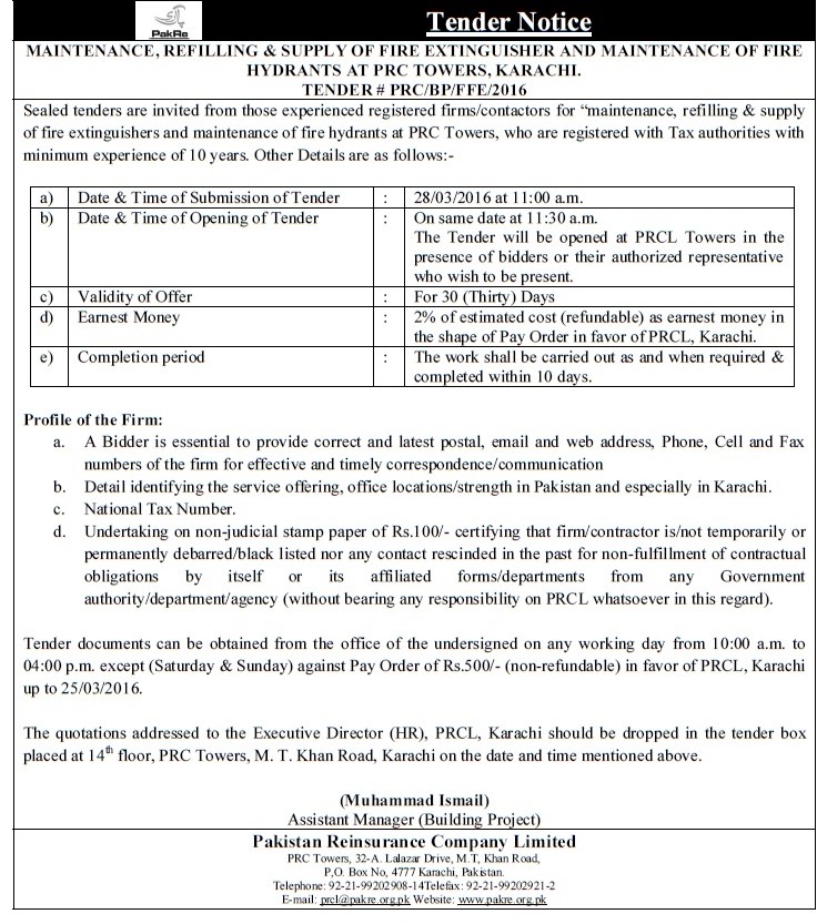 Tender notice for maintenance and refilling of fire extinguishers_Mar 2016