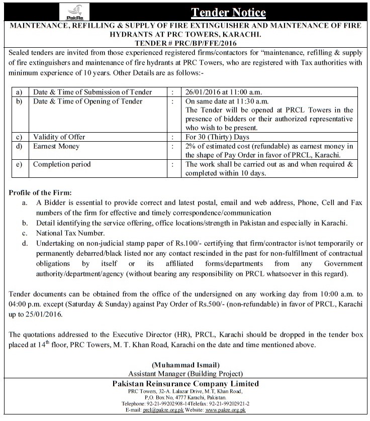 Tender notice for maintenance, refilling and supply of fire extinguisher and maintenace_12 Jan 2016