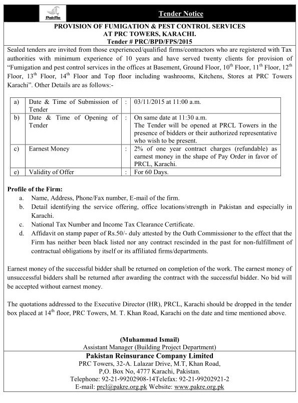 Tender notice for provision of fumigation and pest control services_Oct 2015