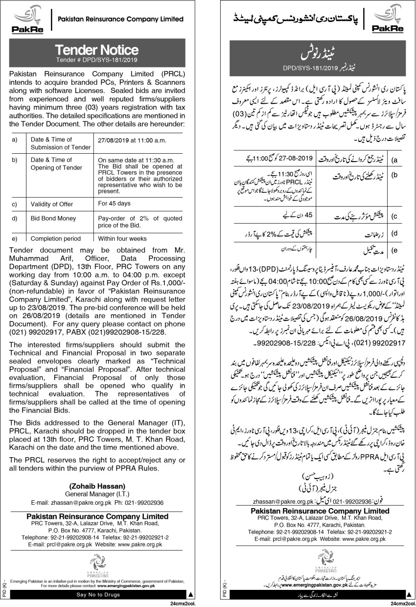 Tender Notice for Purchase of Branded PCs Printers Scanners_08 Aug 2019