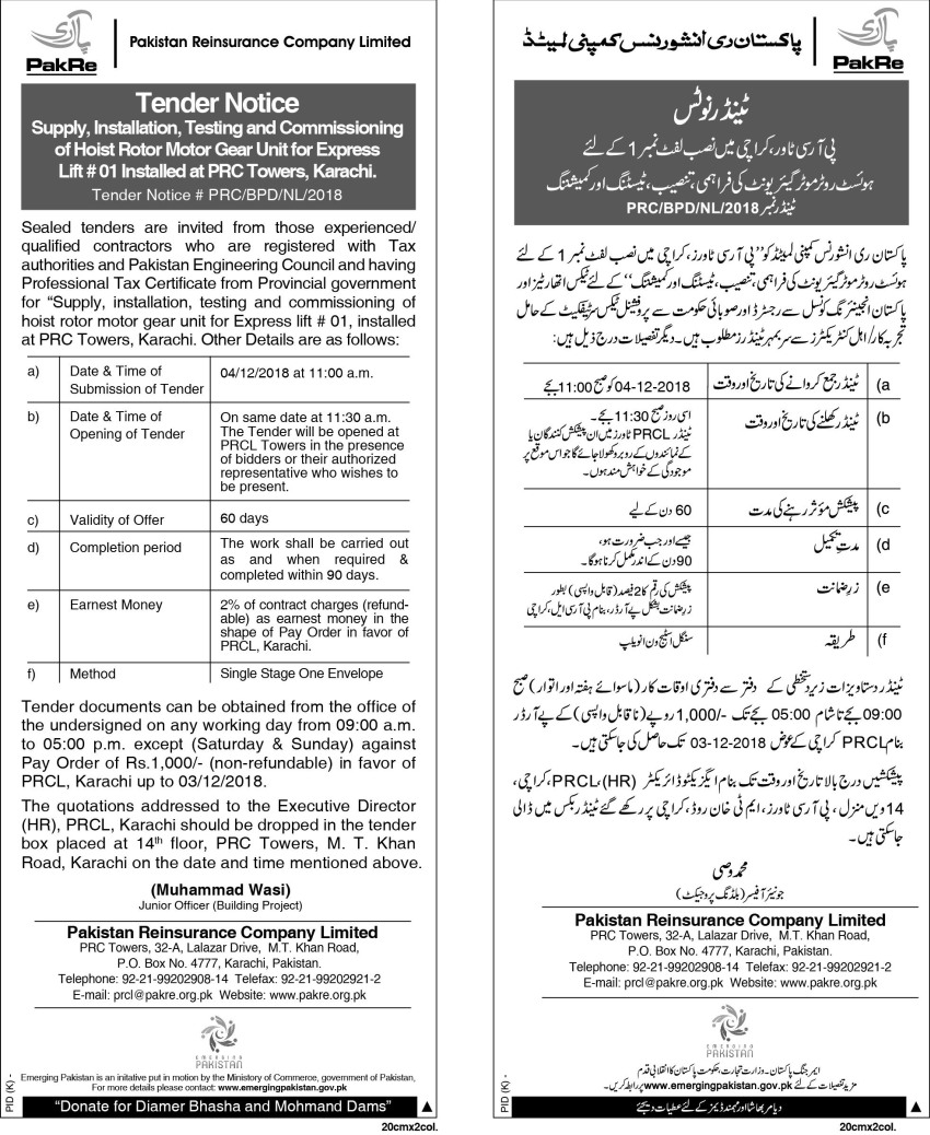 Tender notice for supply installation testing commissoning of Hoist Rotor Motor Gear Unit16 Nov 2018